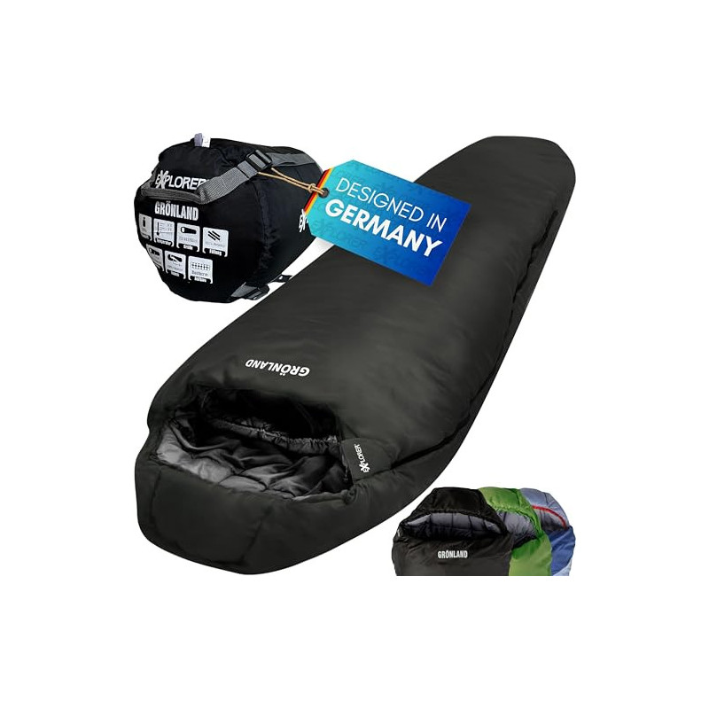 EXPLORER® GRÖNLAND Schlafsack -23°C -5°C [350GSM] 3-4 Jahreszeiten Winter Mumienschlafsack Erwachsene[1900g] 230x82x55cm Zip-