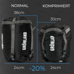 🌿 𝗞𝗢𝗠𝗣𝗔𝗞𝗧 - Der Mumienschlafsack lässt sich trotz der großen Liegefläche von 230 x 82 x 55 cm auf geringe 24 x 30 cm im Kompressions-Packsack verstauen, bei einem Gewicht von 1900 Gramm