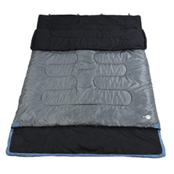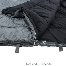 Deckenschlafsack mit guter Isolierung und 200g/m² Flächengewicht, weiches Pongee Innenfutter und gefütterte Reißverschluss Abdeckung. Komplett geöffnet ergeben sich 2 Decken, Oberteil als Einzelschlafsack nutzbar