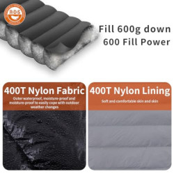 Premium-Daunen: Der Schlafsack für Erwachsene ist mit 600 g Premium-Entendaunen gefüllt, die von RDS mit 600+ Füllkraft zertifiziert sind, natürlich, ohne Verunreinigungen, ohne Geruch, hält Sie in kalten Nächten warm und eignet sich für Rucksacktouren, Camping und Wandern im Freien