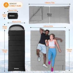 【Ideale Wahl für Schlafsack】: Egal, ob beim Camping, auf Reisen oder bei Outdoor-Abenteuern, dieser 3-in-1 Schlafsack ist die ideale Wahl für Erwachsene. Sein vielseitiges Design eignet sich für verschiedene Jahreszeiten und Umgebungen und bietet eine komfortable Schlafumgebung im Freien.<...