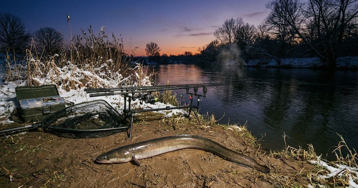Wenn du diese Seite liest, suchst du wahrscheinlich nach einem Weg, auch im Winter Aale zu fangen. Die ehrliche Antwort: Es wird sehr schwer. Aale sind wechselwarme Tiere – ihre Körpertemperatur entspricht der Wassertemperatur. Sobald diese unter 4-5°C fällt, verfallen sie in Winterstarre. Ihr Stoffwechsel wird minimal, sie stellen die Nahrungsaufnahme komplett ein und graben sich in den Schlamm oder in Steinpackungen ein.