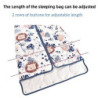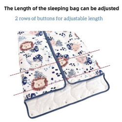 Einstellbare Länge: unten am Schlafsack befinden sich 2 Reihen mit Knöpfen. Die Länge des Schlafsacks kann jederzeit an die Körpergröße des Babys angepasst werden.