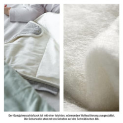 WOLLE ZU 100% AUS DEUTSCHLAND - Schlafsäcke mit Wolle Füllung von lavalan pure. Die Füllung verleiht eine unvergleichliche Atmungsaktivität, reguliert die Körpertemperatur, sorgt für wohlige Wärme unter allen Bedingungen - ohne zu überhitzen und ist von Natur aus geruchsneutralisierend.