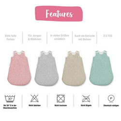 GANZJÄHRIG EINSETZBAR & VERSCHIEDENE AUSFÜHRUNGEN - Ob als Ganzjahres-Schlafsack oder Schlafsack Winter einsetzbar. Verfügbar als Schlafsack mit Füßen und Babyschlafsack Rund in tollen Designs.