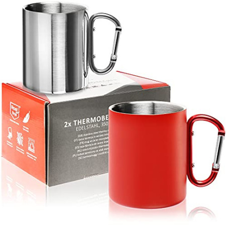 VIELSEITIG & PRAKTISCH: Die leichten & kompakten Edelstahl-Becher mit Karabinergriff sind bequem tragbar für jedes Reise- & Campinggepäck. Ideal für Outdoor-Aktivitäten wie Wandern, Campin...