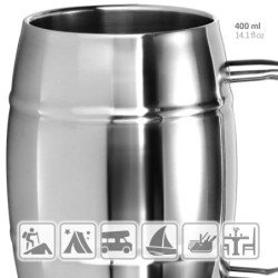NACHHALTIG: Die Campingtasse ist eine umweltschonende Alternative zu Plastikbechern! Die doppelschichtige Wand hat eine thermoisolierende Wirkung und Getränke bleiben länger kalt oder warm!
