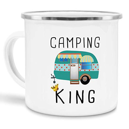 Bedruckte Emaille-Tasse mit CAMPING-Motiv und lustigem Spruch - das perfekte Geschenk für Camper