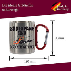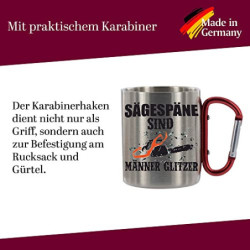 Kaffeetasse und Druck in höchster Qualität. - Der Becher mit Karabiner wird in Deutschland und in Handarbeit beidseitig bedruckt.Handspülung empfohlen –