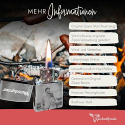 ORIGINAL: Das personalisierte Zippo Feuerzeug ist das ideale Geburtstagsgeschenk für den Papa. Das Sturmfeuerzeug aus der USA ist weltbekannt und besonders beliebt wegen seiner Qualität und seiner witterungsbeständigkeit