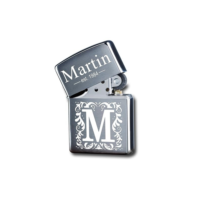 🔥 𝐏𝐄𝐑𝐒𝐎𝐍𝐀𝐋𝐈𝐒𝐈𝐄𝐑𝐓 Das Zippo Sturmfeuerzeug ist der Klassiker schlechthin. Durch die Gravur werden es die idealen Geschenke für Männer. Wir brauchen nur den Namen (your Name) und wenn du willst, das Geburtsjahr und schon zaubern unsere Grafiker ein perfektes personalisiertes Geschenk. Nachname, Vorname oder Schriftzug. In diesem Design ein Monogramm. Wir bieten aber auch andere Artikel mit völlig freien Gestaltungsmöglichkeiten
