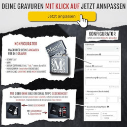 🔥 𝐇𝐈𝐍𝐖𝐄𝐈𝐒 Das Zippo Feuezeug mit Gravur alleine ist das perfekte Geburtstagsgeschenk für Männer. ACHTUNG es ist aber noch nicht mit Zippo Benzin gefüllt. Mit dem optionalen Geschenkset, dass du gleich dazu bestellen kannst, kannst du gleich durchstarten. Das sind optimale, personalisierte Geschenke für Männer