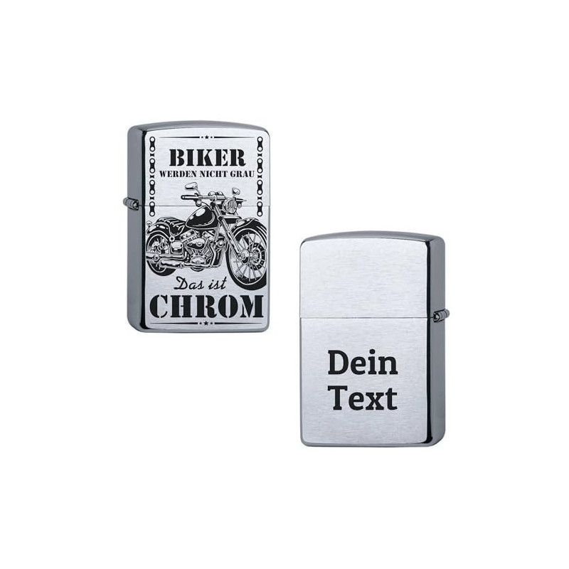 👍 Verschiedene Motive: Wir bieten Ihnen die Möglichkeit, dieses Zippo Feuerzeug ganz nach Ihren Wünschen anzupassen. Wählen Sie für die Vorderseite aus 12 verschiedenen Motorrad-Motiven und ergänzen Sie dieses optional noch mit einem persönlichen Wunschtext auf der Rückseite des Sturmfeuerzeugs. Das gewünschte Motiv wählen Sie ganz einfach im nächsten Schritt, im Bereich der Anpassung, aus.