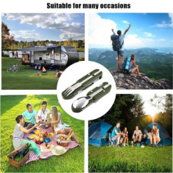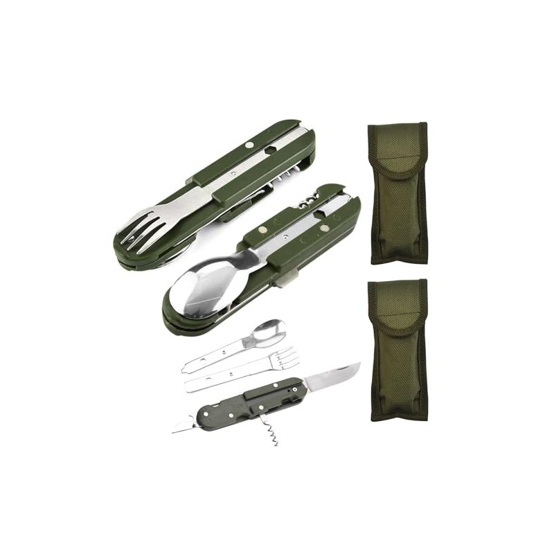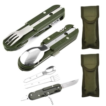 ✅【6-in-1-Multifunktionswerkzeug】: Outdoor-Besteck der Bundeswehr. Dies ist ein sehr vielseitiges und praktisches Besteckset. Alles lässt sich in eine kompakte und praktische Form zusammenfalten. Unser Klappbesteckset umfasst Edelstahllöffel, Gabeln, Messer, Dosenöffner, Weinöffner und Flaschenöffner. Damit haben Sie alles, was Sie unterwegs oder beim Camping brauchen, dabei und es passt in Ihre Handfläche. Kein Wegwerfen von umweltschädlichen Plastikgabeln, -löffeln usw. mehr.