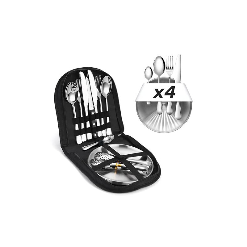 ✅ ZUVERLÄSSIGKEIT ❱ Dieses Geschirr set aus Edelstahl bietet nicht nur Langlebigkeit und Korrosionsbeständigkeit, sondern erweist sich auch als eine äußerst geeignete und praktische Wahl für Outdoor-Aktivitäten, und garantiert bei jedem Abenteuer das beste Erlebnis.