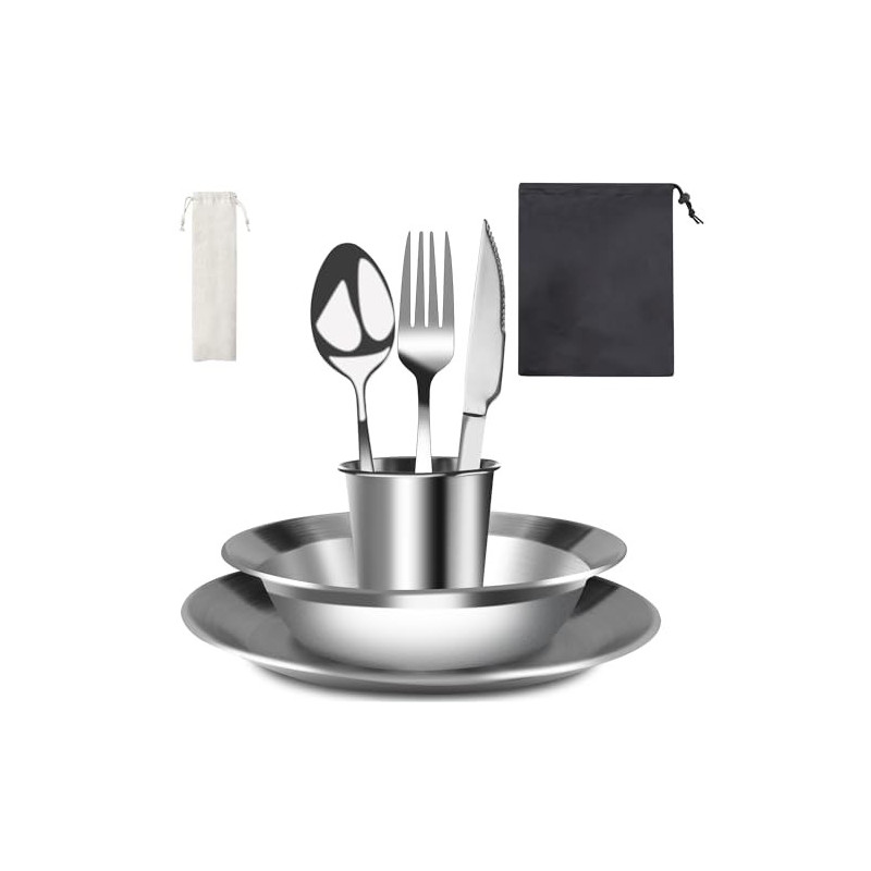 【8-teiliges Campingbesteck-Set】Das Geschirrset besteht aus einer 21 x 1,8 großen geschliffenen flachen Schüssel und einem 18 x 4,6 großen geschliffenen tiefen Becken. 1 350-ml-Becher, 1 Messer, 1 Gabel, 1 Löffel, 1 weiß Tasche, 1 schwarze Tasche. Perfekt für Paare oder Freunde beim Camping oder Picknick.