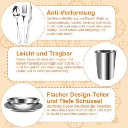 【Hochwertiges Material】Dieses campingbesteck edelstahl ist aus hochwertigem Edelstahl gefertigt, langlebig und rostfrei, jedes Besteck mit einem feinen Polierprozess und glatter Oberfläche, nimmt keinen Geruch auf. Bietet Ihnen ein angenehmes Esserlebnis während der Mahlzeiten.