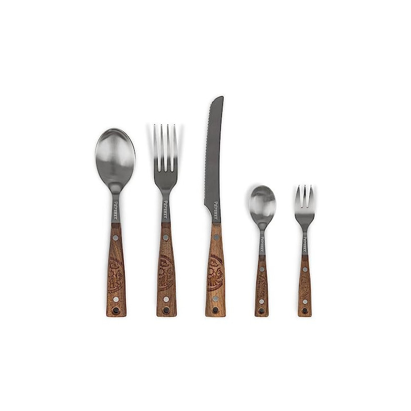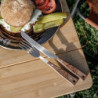 Liegt gut in der Hand: Alle Teile des Bestecksets verfügen über einen durchgehenden Edelstahlkern mit Griff aus Walnussholz - die markante Maserung macht das Reisebesteck zum Blickfang