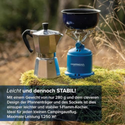 Kompakt und leistungsstark: Einfacher zu verwendender Einflammkocher (1250 W); robustes Design; großes Topfkreuz für maximale Stabilität beim kochen