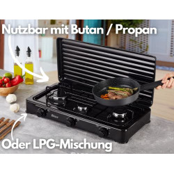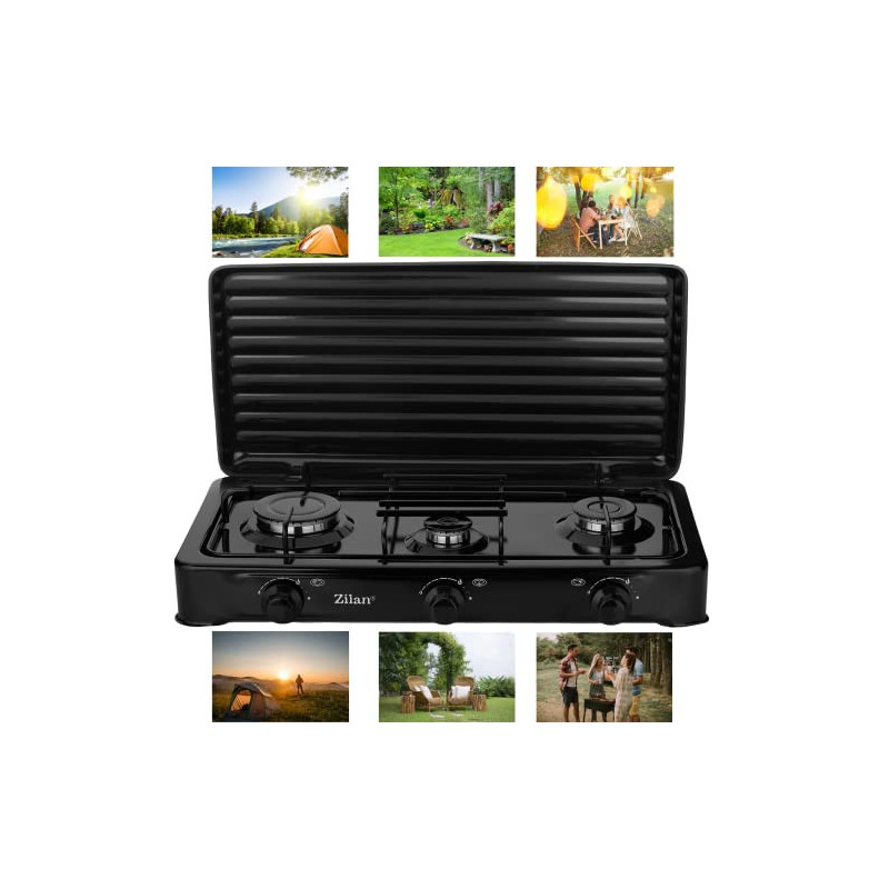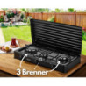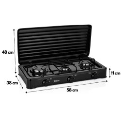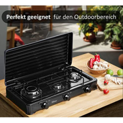 Robuster und leistungsstarker 3-Flammen-Gaskocher für den Außenbereich. Ausgestattet mit einem abnehmbarem Deckel und einem Drahtgitter. Dieser praktische Gaskocher ist die ideale Lösung für Camping oder andere Outdoor Aktivitäten.