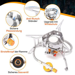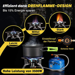 🔥【𝟯-𝗠𝗜𝗡𝗨𝗧𝗘𝗡 𝗞𝗢𝗖𝗛𝗘𝗡】15% ENERGIE SPAREN & LEISTUNGSSTARK: Dieser Gaskocher für Camping mit integriertem Windschutz bringt nachweislich einen Liter Wasser in 3 Minuten zum Kochen. Dank der rotierenden Flamme spart dieser Camping Kocher ca. 15% Brennstoff beim Kochen und dient perfekt für die schnelle und gefahrlose Zubereitung von Mahlzeiten.