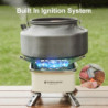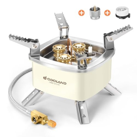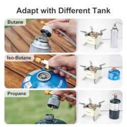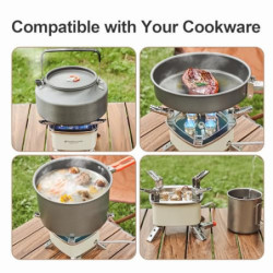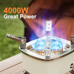 Starke Leistung und winddichter Gaskocher: Der hocheffiziente Campingkocher hat eine Leistung von 4000W, es dauert nur 3 Minuten, um 1L Wasser zu kochen (je nach Wetter, Brennstoff und Kochgeschirr) durch die Superfeuerleistung. Das winddichte Design erhöht auch die Effizienz Ihres Küchenherds und spart Ihnen viel Brennstoff.