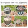 Flammenregulierung und ständige Unterstützung: Der Gaskocher verfügt über einen Flammenregler, der die Flammengröße je nach Bedarf einstellt und sich automatisch an die Wölbung des Topfbodens anpasst, und die geriffelte Ablagefläche sichert problemlos eine Vielzahl von Töpfen und Pfannen. Ohne Angst, dass Ihr Kochtopf umkippt.