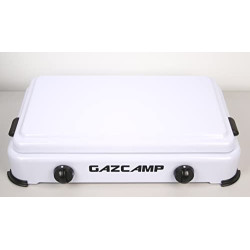 Gazcamp Gaskocher Campingkocher 2,4 kW 50 mBar 2 flammig Weiß mit Deckel 1/4" Linksgewinde-Anschluss mit Schlauch 80 cm und R