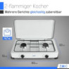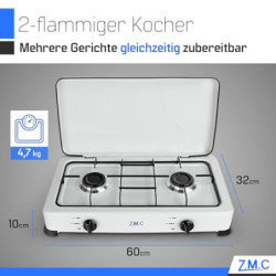 LEISTUNGSSTARKER GASKOCHER: Mit zwei Brennern, die jeweils eine Leistung von 2,2kW bieten, ist der Campingkocher optimal für schnelles und effizientes Kochen nicht nur im Freien. Der Verbrauch von nur 320 g/h macht ihn zu einer wirtschaftlichen Wahl.