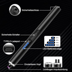 ✨ERWEITERTE SICHERHEITSDESIGN: Entwickelt mit dem Gedanken an die Sicherheit von Kindern, so funktioniert es: Schritt eins - Schalten Sie den Hauptschalter an der Unterseite des USB-Feuerzeugs ein. Schritt zwei - Drücken Sie den Zündschalter nach oben, um den Funken zu erzeugen