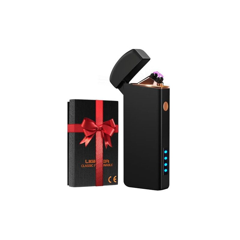 Neues Verbessertes Elektrisches Feuerzeug - Das wiederaufladbare USB Feuerzeug war eine eingebaute verbesserte Lithiumbatterie, langlebiger als zuvor, etwa 1,5 Stunden voll aufgeladen, was 300 herkömmlichen Feuerzeugen entspricht. 4 LED-Anzeigen zeigen den verbleibenden Akku an und erinnern Sie rechtzeitig an das Aufladen. Keine Notwendigkeit für Gas oder Butan, sicher und umweltfreundlich, während Sie Ihr Geld sparen.