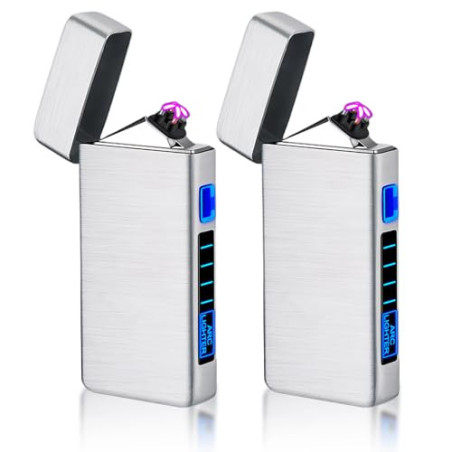 🔥【HOCHWERTIGES MATERIAL】USB Elektronische Feuerzeug besteht aus hochwertigem Zinklegierungsmaterial mit hochwertiger Verarbeitung, Doppelbogen und Leistungsanzeige. Wiederverwendbar, kein Butan/Gas erforderlich, zuverlässig und sicher, energiesparend und umweltfreundlich.