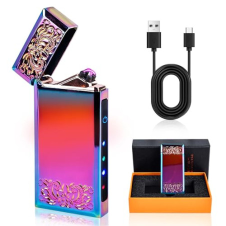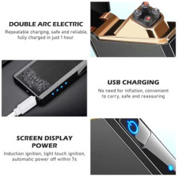 🔥【BERÜHREN DOPPELTEN BOGEN ELEKTRISCHE FEUERZEUG】USB Elektronische Feuerzeug mit hochwertigen Zink-Legierung Material, PVD-Eis-Beschichtung Prozess, glatt und hell Aussehen, dem richtigen Gewicht und hervorragende Gefühl, Mit plasmatechnologie, plasmastrahl Lichtbogen, kann lichtbogenfunken erzeugen, erzeugt mit einem knopfdruck einen elektrischen lichtbogen, licht in kürzester zeit. Es erzeugt Lichtbogenfunken, die für den menschlichen Körper unschädlich sind.