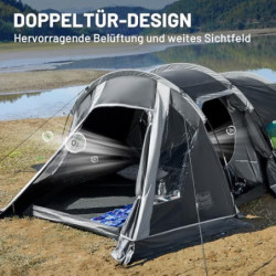 ZELT 3 PERSONEN: Durchdachtes Design mit doppelten Türen und Doppel-Fenster-Design für effektive Belüftung, weites Sichtfeld, erhöhter Zeltboden und verlängertes Regenfliegendesign verbessern die wasserdichte Leistung und schaffen ein komfortables Outdoor-Erlebnis.
