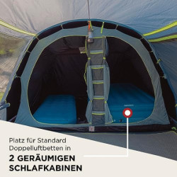 ZWEI EXTRA GROßE VERDUNKELTE SCHLAFKABINEN: bis zu 99% des Tageslichts werden blockiert und sorgen für einen erholsamen Schlaf; außerdem ist es innen auch tagsüber bis zu 5°C kühler