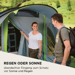 100% WASSERDICHTES ZELT: 4.000 mm Wassersäule in Kombination mit abgeklebten Nähten und vollständig eingenähter Bodenplane, absolut wasserdicht; UV Guard 50+ bietet hohen Schutz bei Sonneneinstrahlung