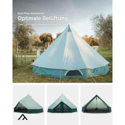 IMMER GUT DURCHLÜFTET: Dual Flow Ventilation (Lüftungen oben und unten) für eine gute Belüftung im Tipi Zelt
