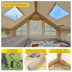 • Luftzelt Aufblasbar Camping, Aufblasbares Zelt 2-6 Personen, Zelt Aufblasbar, Familienzelt Aufblasbar  2 Minuten schnellaufba