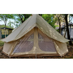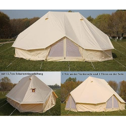 【Bequem & Atmungsaktiv】Das Glockenzelt mit Stehhöhe hat 6 Belüftungsfenster in halbkreisförmigem Design und 3 Türen mit Moskitonetz- und Reißverschlussabdeckung, zwei vorne und vier hinten