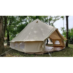 【Wasserdicht & Robust】Das Camping Jurtenzelt besteht aus hochwertigem Baumwoll-Canvas/Leinwand-Gewebe mit wasserdichter Behandlung+Strapazierfähige 540gsm PVC-Bodenplane, stabil und langlebiger