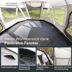 ✔ EINGENÄHTER ZELTBODEN: Der fest eingenähte Zeltboden schützt vor Nässe und Zugluft von unten und sorgt zusammen mit den Moskitonetzen an allen Eingängen für einen insektenfreien Innenraum.
