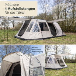 ✔ GROßES ZELT FÜR 4 PERSONEN: Das Nordland 4 Sleeper ist ein großes Gruppenzelt mit drei Eingängen, einer davon wettergeschützt mit Vordach und die anderen können mit den mitgelieferten 4 Aufstellstangen zu Sonnendächern umfunktioniert werden.