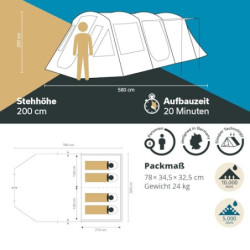 ✔ SKANDIKA SLEEPER TECHNOLOGIE: Die spezielle Beschichtung auf dem Außenzelt im Bereich der großen schwarzen Schlafkabine (210 × 300 cm) ermöglicht mit optimaler Abdunkelung einen möglichst langen und erholsamen Schlaf.