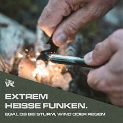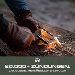 EINFACHE BEDIENUNG - Einfach ein kleines Zundernest vorbereiten, die Schutzschicht entfernen und mit dem Schaber extrem heiße Funken erzeugen. Mit WOLFGANGS bist du bei jeder Wetterbedingung bestens gerüstet.