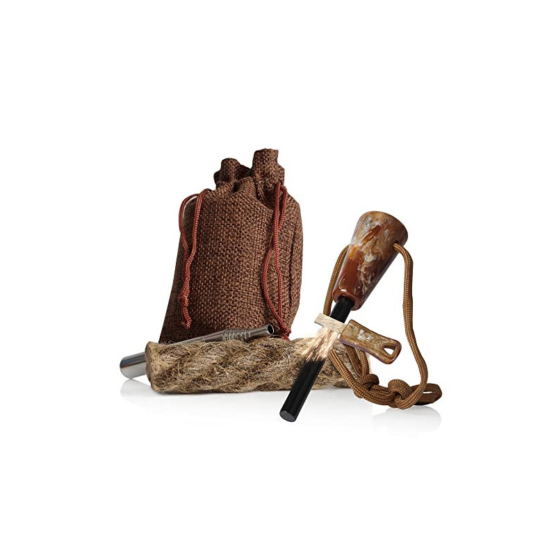 PRAKTISCH | Das CampFeuer Feuerstahl-Set besteht aus einem Feuerstahl mit Feuerstarter und Paracord-Seil, einem Blasrohr, einem Zunder und einem Stoffbeutel. Das Set ist der perfekte Begleiter bei allen Outdoor-Aktivitäten wie Wandern und Camping. Der Feuerstahl lässt sich im Gegensatz zu gewöhnlichen Feuerzeugen ohne Strom und Gas entzünden.