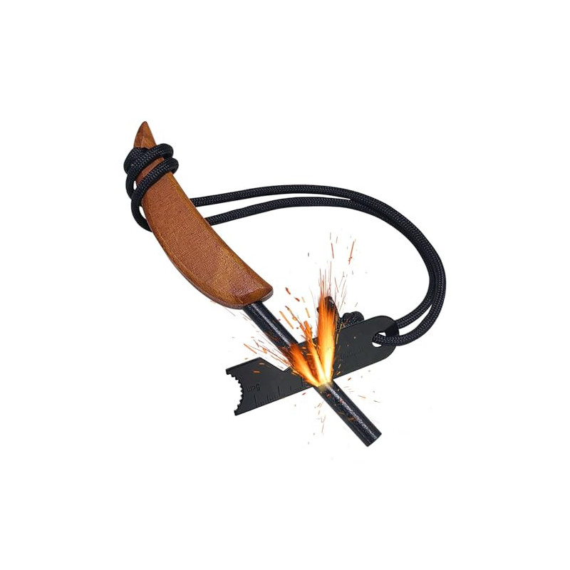 【Hochwertiges Material】Dieser Feuerstahl besteht aus einer hochwertigen Magnesiumlegierung und einem robusten Holzgriff, was seine Zuverlässigkeit und Haltbarkeit unter verschiedenen Bedingungen sicherstellt. Der Magnesium-Feuerstarter bietet tausende Zündungen, und das Holzgriff-Design ist nicht nur ästhetisch ansprechend, sondern bietet auch einen komfortablen Griff.