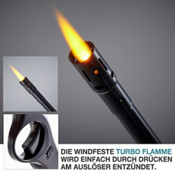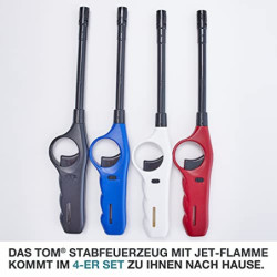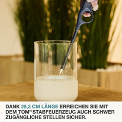 HOHE SICHERHEIT – Der groß e, besondere und 28,3 cm lange Stab des TOM Sturm Gasfeuerzeug sorgt für ausreichend Abstand zur Flamme. Für XXL Sicherheit sorgt zudem die Kindersicherung