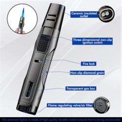【Langlebig Metallmaterial】 Gefertigt aus hochwertigem, langlebigem Metallmaterial, ist dieses Premium Feuerzeug robust und widerstandsfähig. Das solide Design garantiert eine lange Lebensdauer, sodass Sie sich auf Ihr Feuerzeug mit Gas befüllt verlassen können. Winddicht Gas Nachfüllbar Sturmfeuerzeug mit Jetflame verfügt über einen wärmeisolierenden Keramikbrenner, der widerstandsfähiger gegen hohe Temperaturen ist und die Wärme effektiv isoliert.