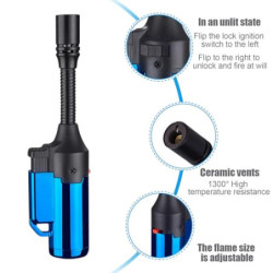 【Mit flexiblem Hals】14 cm langer Kerzenanzünderstab mit flexiblem Hals, Feuerzeug Sturmfeuerzeug der leicht um 360 Grad gedreht werden kann, Stabfeuerzeug Gas Nachfüllbar um unterschiedlichen Beleuchtungsbedürfnissen gerecht zu werden und gleichzeitig die Hände von der Flamme fernzuhalten. Jetflame Gasbrenner Der keramische Hitzeschild und die Flammendüse aus reinem Kupfer sind langlebig und beständig gegen hohe Temperaturen bis zu 1300 °C.