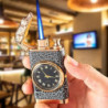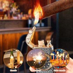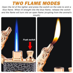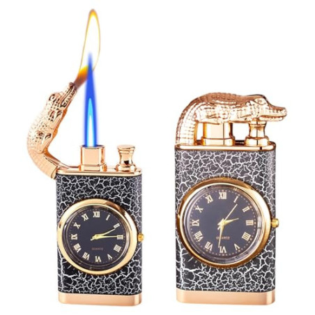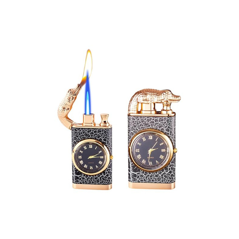 【2-in-1-Design】: Unser Retro-Feuerzeug ist die perfekte Kombination aus einer elektronischen Uhr und einem Feuerzeug. Das Quarzzifferblatt zeigt nicht nur die Zeit genau an, sondern verleiht dem Double Jet Flame Feuerzeug auch Schönheit. Die Kopfbedeckung des Retro-Krokodil-Feuerzeug übernimmt die Technik des geprägten Krokodils, die lebendig und dreidimensional ist.